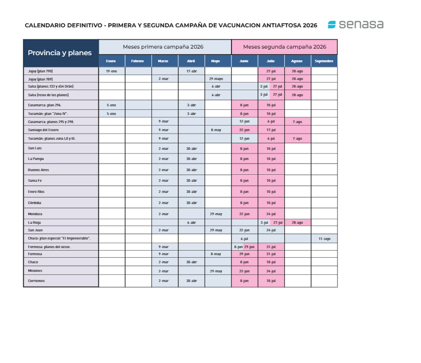 La ganadería argentina encarará 2026 con un cambio clave en la estrategia sanitaria, luego de que el Senasa oficializara un nuevo cronograma de vacunación contra la fiebre aftosa. La principal novedad es que dejará de ser obligatoria la segunda dosis para vaquillonas, novillos y novillitos, una decisión basada en la duración comprobada de la inmunidad y que permitirá ahorrar unas 14 millones de dosis.