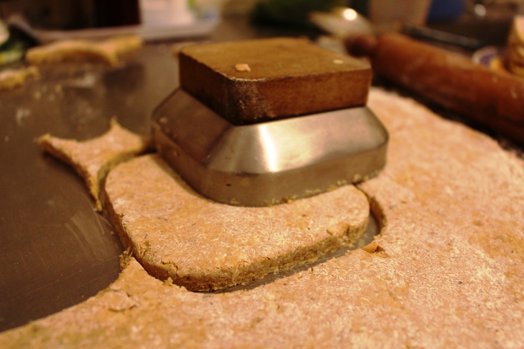 Esparcir un poco de almidón de maíz, o harina, sobre la mesada y estirar la masa hasta que quede de ½ cm de grosor. Cortar con el cortante elegido para darle forma. También se pueden hacer bolitas y aplastar para que queden circulares.