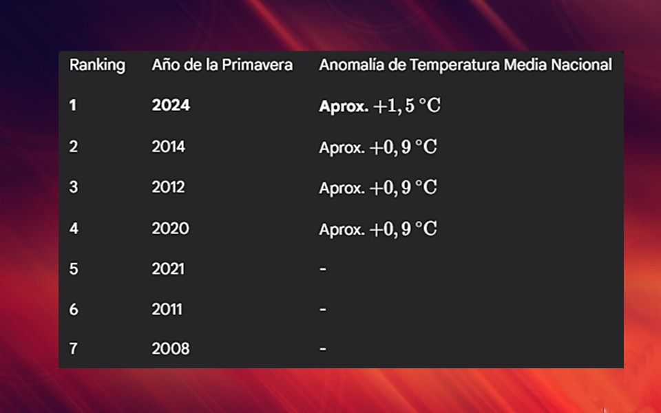 Según los registros del Servicio Meteorológico Nacional (SMN), el ranking de las primaveras con mayor anomalía de temperatura media es el siguiente: