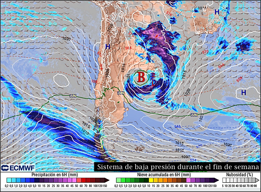 Se ha pronosticado un nuevo evento de ciclogénesis para este fin de semana, que se manifestará como un centro de baja presión que afectará a gran parte del país.
